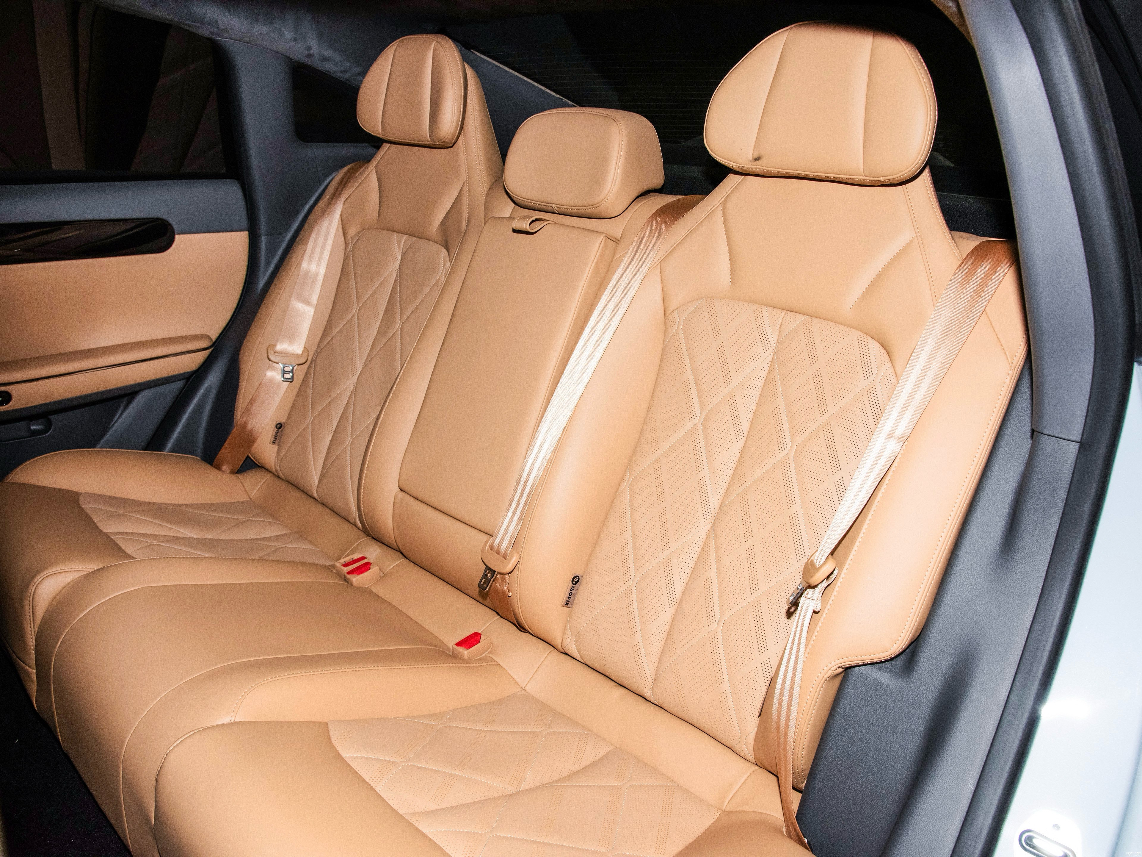 这款车是带有真皮座椅的,并且还是同级中Nappa真皮包覆面积最大的车型,就连顶棚都采用麂皮绒设计,绝对称得上豪华。零跑C01的定位还是比较高的,毕竟是一款中大型轿车,它的车身轴距达到了2930mm,后排能留出319mm的超大腿部空间,不会出现顶头和顶腿的情况,车内还带有Hi-Fi级音响,专为车辆定制了12个高性能扬声器和1个8声道DSP功率放大器,在乘坐舒适享受方面真不输奔驰S级。