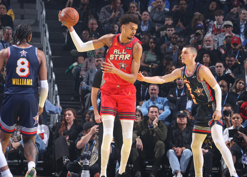 暂停回来,肯尼队接连打铁,特雷-杨轻松上篮,约基奇助攻文班单臂劈扣,文班再次劈扣,坎宁安暴扣为球队止血,关键时刻,亚历山大轰进三分以及暴扣杀死比赛,最终国际队41-32击败年轻的明星队。