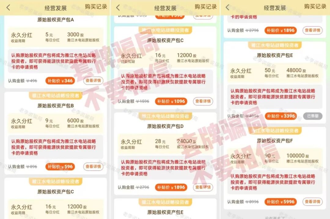 套用“雅江集团”信息,冒充“雅江集团”,已发放扶贫款吸引参与者,兜售虚假股权资产包。