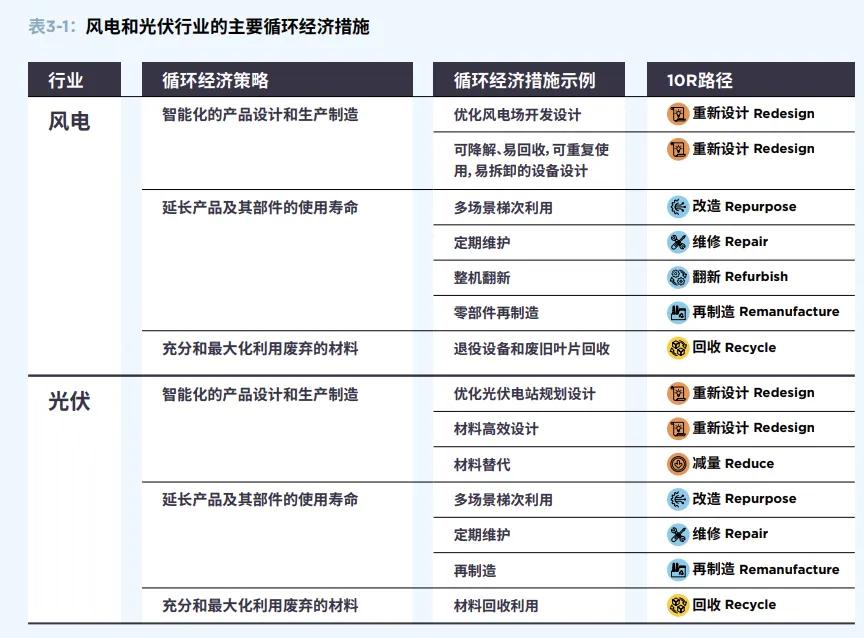 同时,大规模的风电和光伏设备将陆续进入退役期,可能带来土地利用压力和退役组件管理等一系列挑战。因此,落实循环经济策略显得尤其迫切,通过延长风电和光伏的使用寿命,回收利用退役设备中的材料,以减少对关键原材料的依赖,增强关键原材料的供应,最终推动可再生能源价值链向低碳和零废弃转型。