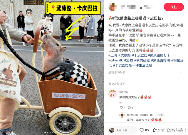 年轻人带宠出行,成为了一种出行潮流。在上海潮流地标武康路,不仅能看到穿着时髦潮流的猫猫狗狗在街拍,甚至还能偶遇网红萌宠“卡皮巴拉”。