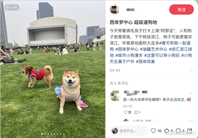 “真羡慕沪上铲屎官们。” 北京的铲屎官雯雯上周去了趟上海,被当地的宠物友好环境所震惊。她告诉剁椒Spicy,虽然近些年北京很多商场都开始主打“宠物友好”空间,但具体实施下来还是不太方便,北京人养狗“偷感”太重了。“每次带着狗狗出去玩都要提前打电话询问场地是否让携带宠物,有一次带着狗狗去海淀某公园遛弯,被保安撵着跑了一路。”
