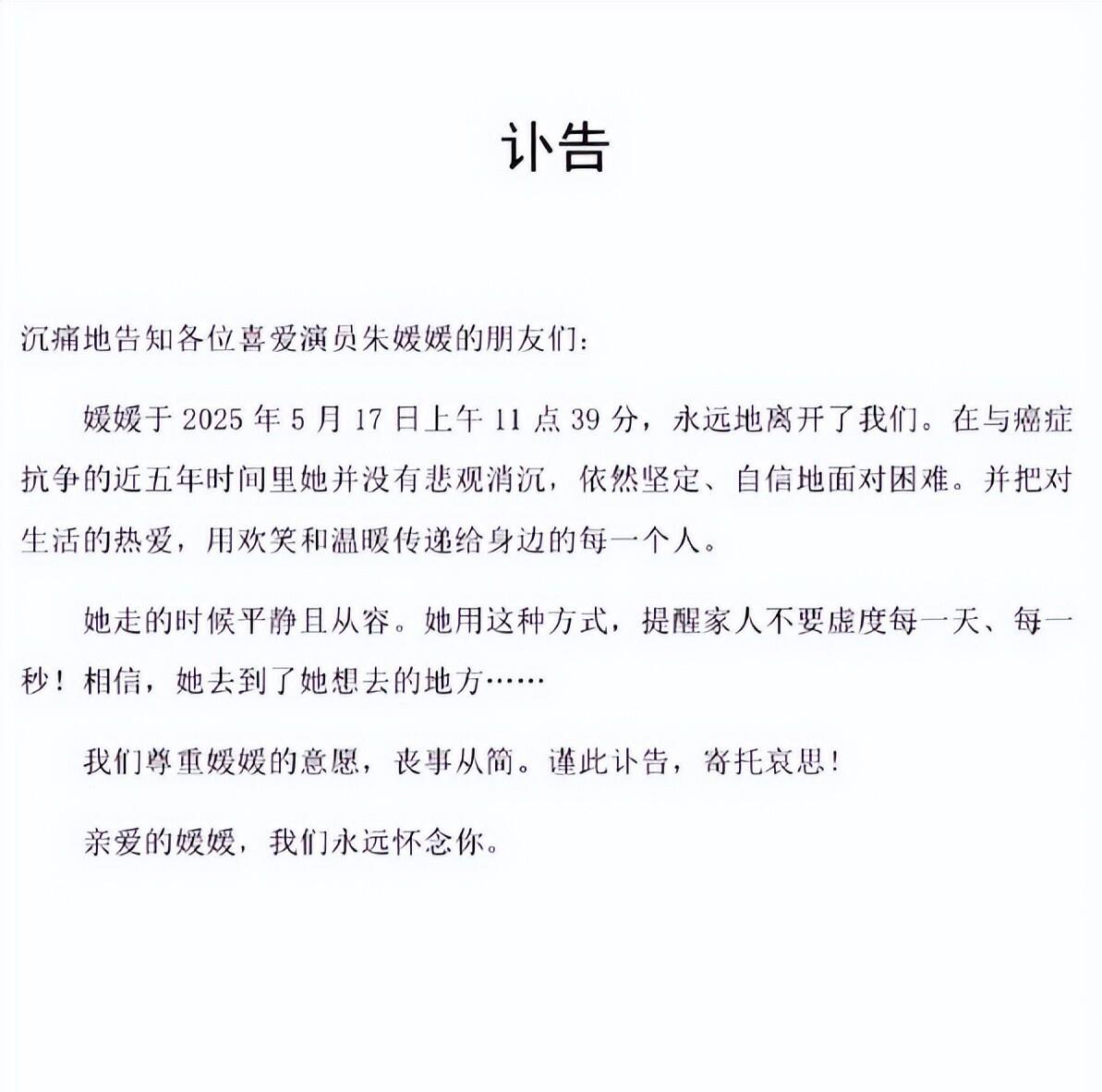 2025年5月21日中午,演员辛柏青的微博让整个娱乐圈炸了锅。 他发了一篇不足200字的短文,平静地宣布妻子朱媛媛已在4天前病逝。