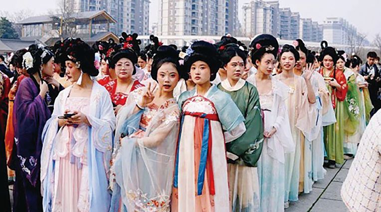 汉服妆造区内,多套唐风齐胸襦裙、明制马面裙供选择,妆娘们以花钿、步摇、璎珞为跑者们打造精致造型。身着鹅黄齐胸裙的王女士与丈夫在曲江池畔拍摄汉服合影,她说:“平时工作忙,难得有机会穿汉服。今天跑完步再拍照,既有运动活力,又有古风韵味,朋友圈点赞要爆了。”