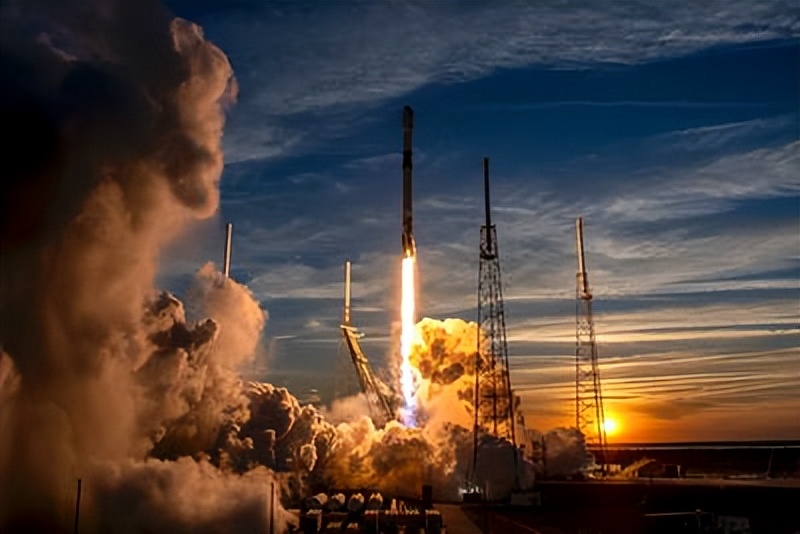 一枚SpaceX猎鹰9号火箭正在发射升空。SpaceX目前已有超过9000颗星链卫星在地球轨道上运行。