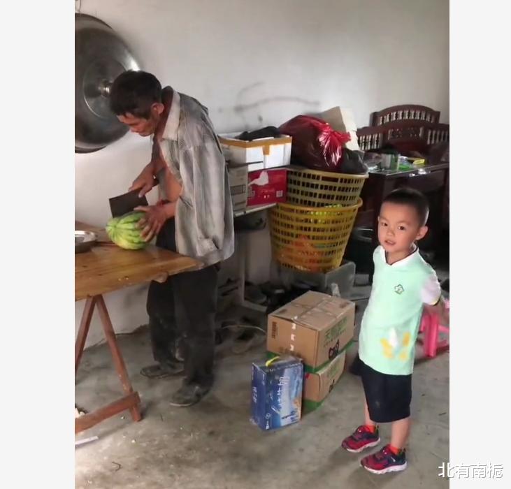 别看大家都说郑祖龙傻,他知道要切西瓜来招待李国色和孩子,孩子特别懂事,他天真的晃荡着双手,说我不想吃,我想留给爷爷吃。