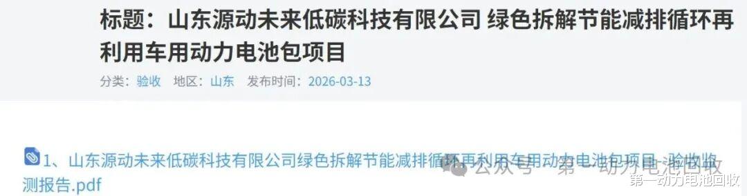 第一动力电池回收消息,近日,相关网站发布了《山东源动未来低碳科技有限公司 绿色拆解节能减排循环再利用车用动力电池包项目》竣工环境保护验收监测报告,标准着该项目即将进入投产阶段。