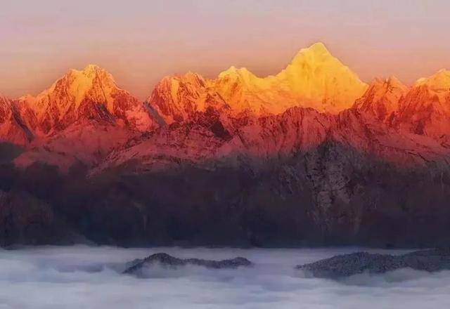 又当太阳升起,金光洒在圣洁的白雪上,雪山被涂上了一层灿烂的金色。