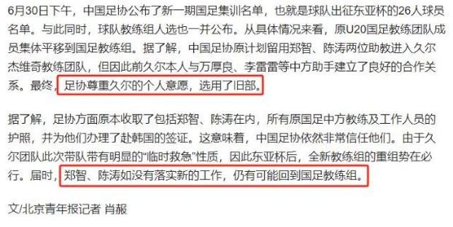 那郑智、陈涛这次,与国足教练团队只能以无缘告终。