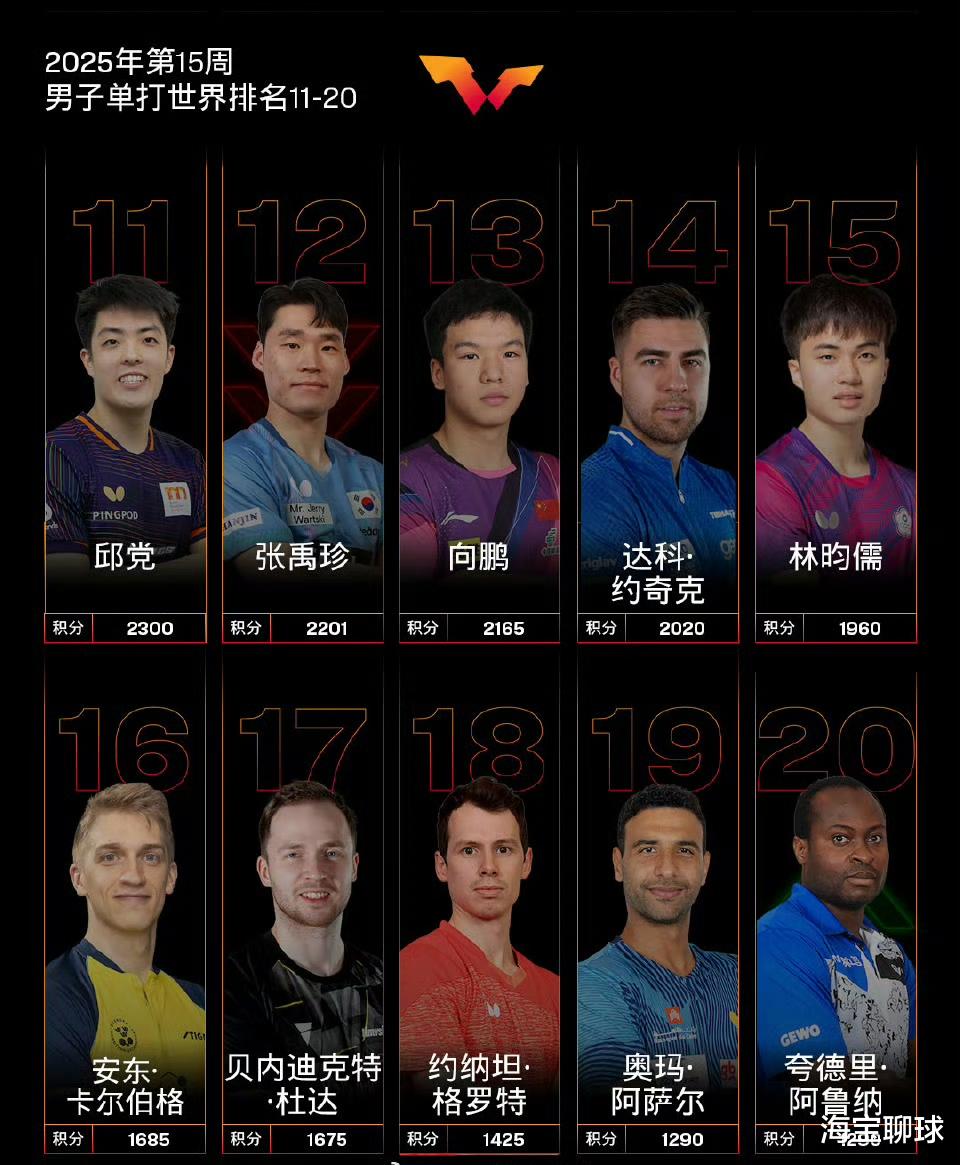 北京时间4月8日,WTT公布2025年第15周男单世界排名。向鹏因获得2025年仁川冠军赛男单冠军收获1000积分,目前向鹏的男单世界排名已经来到第十三位,距离排名第十的艾利克斯勒布伦不过255分,在创造职业生涯最高排名的同时,非常有希望在短时间内正式跻身世界前十行列,届时国乒将有林诗栋等六人占据前十名。