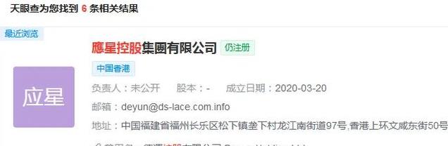 天眼查显示,应星控股为纺织业历史悠久的花边制造商及染整服务供应商,总部位于中国福建省福州市。
