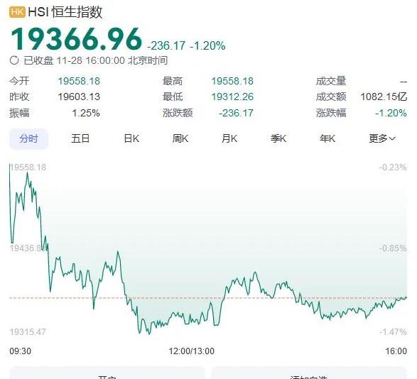 11月28日,港股市场呈现出震荡下行的趋势,各大指数均有所下跌。