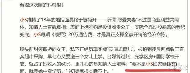 嘿,大S离世之后,小S到底为啥好像被啥给拖住了呢?难不成是她跟大S那些共同的朋友开始烦她了?有道是:“人心隔肚皮”,谁能说得准呢。