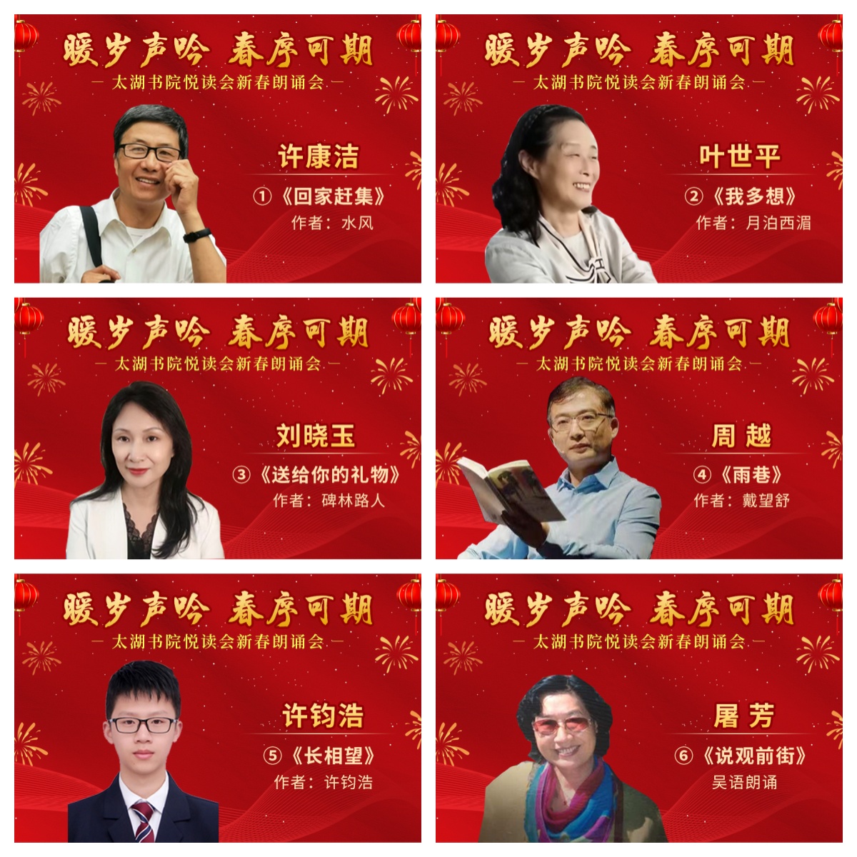 空中新春朗诵会是太湖书院悦读会将全民悦读系列活动与社群悦读文化建设有机结合的新型阅读文化载体,三篇章的节目设计既呼应了“暖岁声吟 春序可期”的主题,也串联起记忆、当下与未来的情感脉络。活动不重名次、唯重真情,既延续了苏州太湖书院“以文会友、以文润心”的文化传统,也践行了中华优秀传统文化“创造性转化、创新性发展” 的时代要求。未来,苏州太湖书院悦读会将继续依托书院丰厚的文化资源,推出更多兼具文化深度与参与热度的朗诵社群的新颖文化活动,让江南文脉生生不息,让文化之暖触手可及,在新时代新征程续写“百年书院”美好篇章,推进苏州社会主义文化强市建设增添智慧与力量。(张思羽)