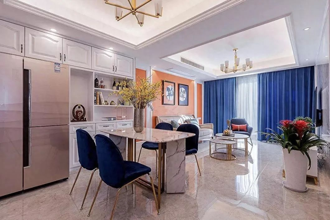 因为这些高档风格的元素往往颜色比较深,如果全部都是同一个色调的深色的话难免会显得单调压抑,采用多色拼接的搭配,整体会显得更加活跃,让空间不乏味。