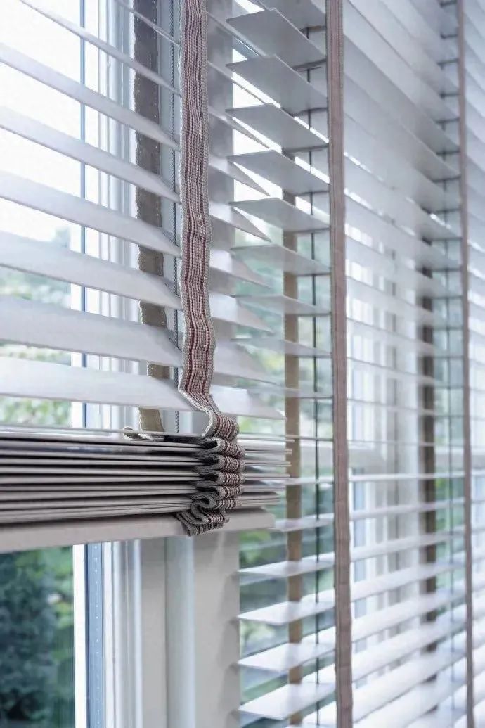百叶帘类似纱帘一样,可以比较灵活控制光线,同时保障空间隐私性。一般在面积比较小的窗户中,百叶帘会是比较合适的选择。