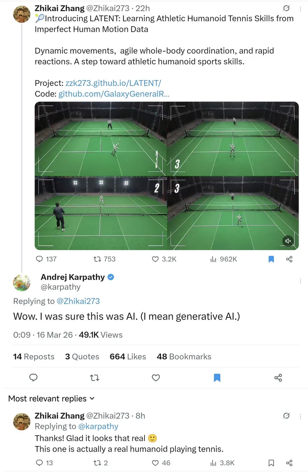 这一视频引得马斯克立即转发点赞,在评论区惊叹:Yeah;AI知名研究员Andrej Karpathy 更是直呼这是 AI 生成的。