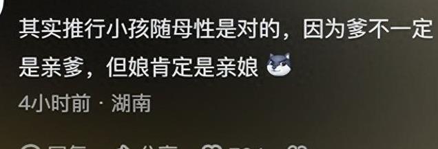 当然了,我也不是说让孩子跟妈姓这事儿就一定不行,毕竟时代在发展,观念在变化,自己的家族家庭能接受就没问题