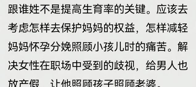 而且啊生育意愿,那可不是靠改个姓就能轻易改变的。它得靠一系列的政策支持,比如减轻育儿负担、提供更好的教育资源、改善生活环境等等。这些才是实打实的,能让年轻人看到希望的东西
