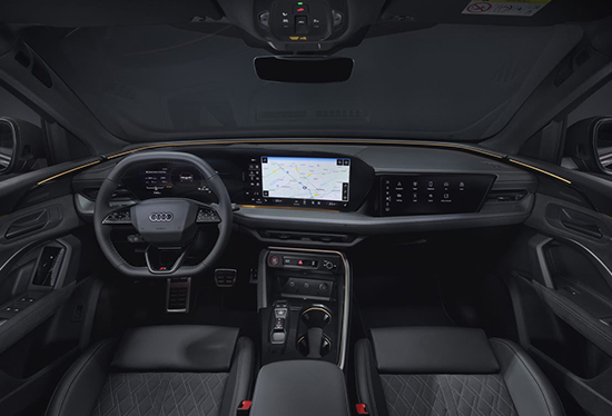 内饰采用奥迪最新的家族式设计语言,中控台略微倾向驾驶员一侧。双联屏带有一定的曲率,融合了全液晶仪表以及中控屏,整体观感相当出色。此外,副驾驶前侧还配备10.9英寸MMI显示屏,主要负责影音娱乐功能。