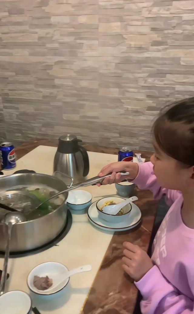 不管是涮肉还是涮菜,谢妈妈总是把第一筷子夹给坐在自己身边的二妹,细节证明,她非常疼爱自己的女儿。