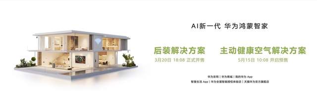 据了解,后装解决方案将于2025年3月20日18:08正式开售,主动健康空气解决方案将于2025年5月15日10:08开启预售。消费者可通过Vmall、华为官网、我的华为APP,以及华为线下门店等参与。