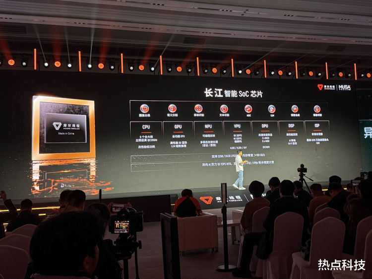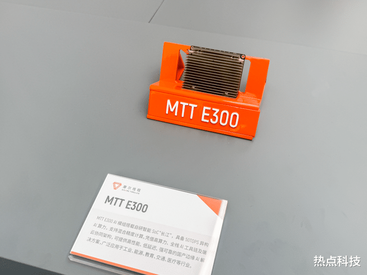 摩尔线程也在现场公布了“长江”智能SoC芯片,这颗芯片采用了8个全大核,主频最高拥有2.65GHz,同时还搭载高性能3D渲染,支持LLM端侧推理,此外还支持VPU、DPU以及DSP等多种解码单元,会后我们也看到了基于“长江”智能SoC打造的MTT E300 AI模组,拥有最高50TOPS的异构AI算力,可以有效地应用于工业、能源、教育等行业。