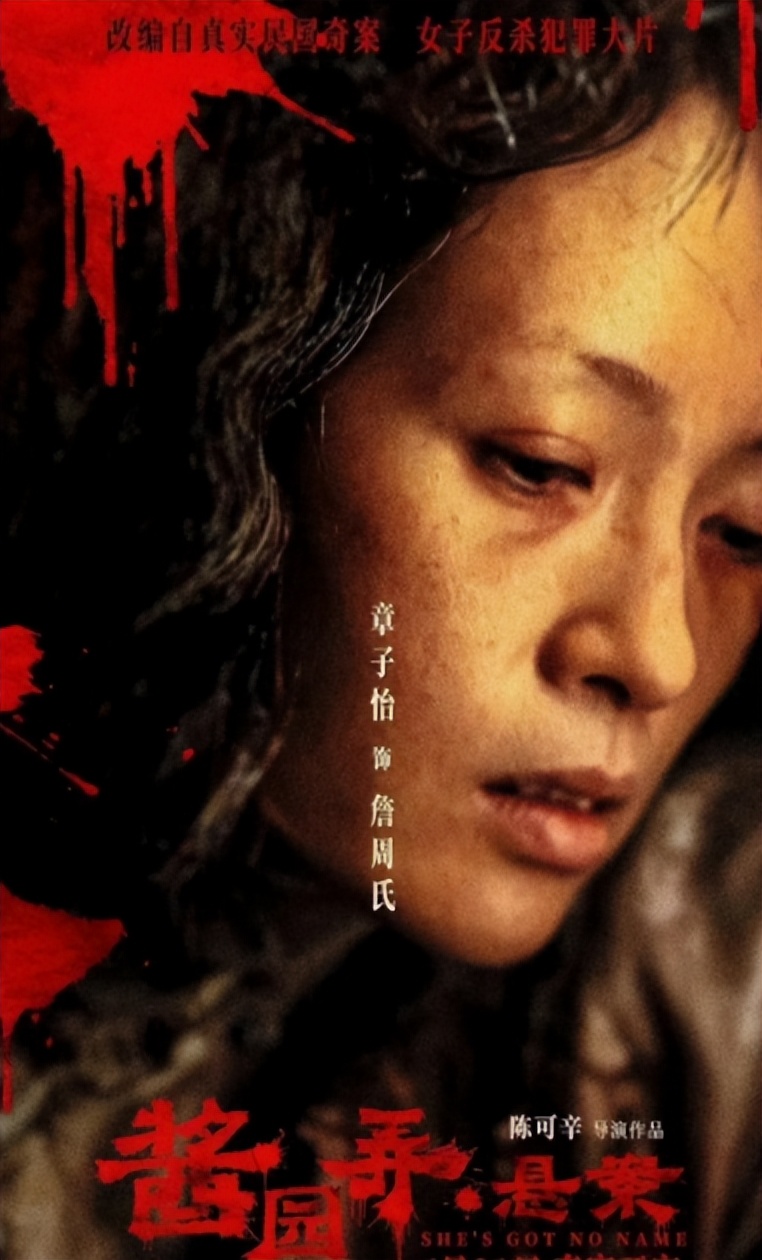 她饰演主角是民国奇案的詹周氏,为了贴合底层受压迫女性形象,章子怡主动把眉毛漂浅,佩戴牙套减重,以黑黄憔悴的妆容掩盖她明艳的气质,她通过眼神的颤抖,佝偻着身子,细节的演绎了家暴受害者的绝望与觉醒。