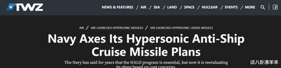 现在,美国空军的AGM-183A“空军快速响应武器”项目前景未卜,据说暂未完全取消,但重金打造的HAWC导弹却迟迟未能问世。美国陆军那边,“暗鹰”高超音速导弹计划也是一拖再拖,就连海军版的“暗鹰”——“中程常规快速打击”导弹也跟着延期了。还有,HALO反舰导弹项目也已经被搁置。