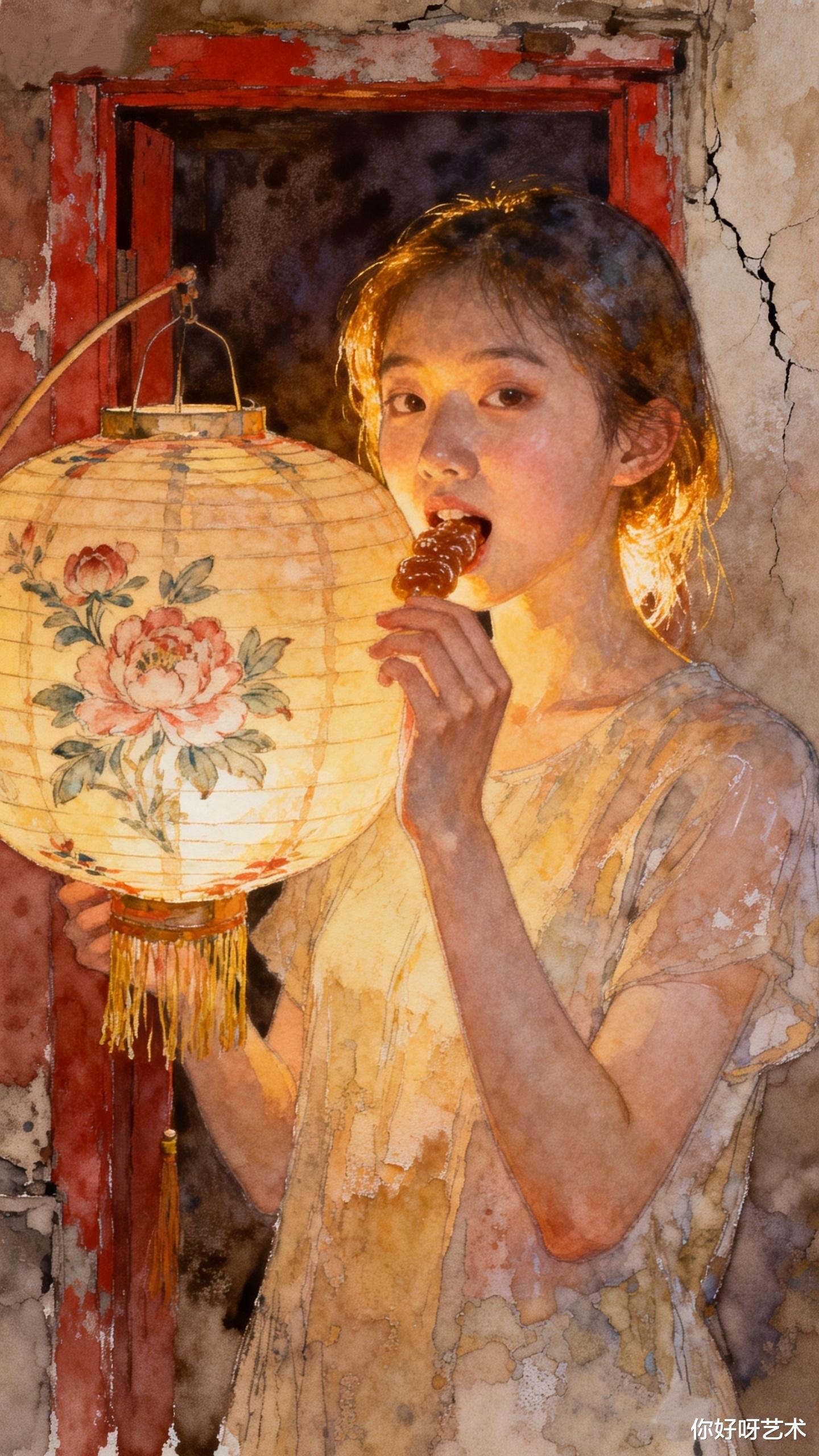 腊月二十三的晨光,像一缕被糖浆浸透的金线,轻轻穿过青石巷的屋檐。水彩少女小葵推开木窗时,檐角的冰凌正簌簌落下,碎成满地晶莹的糖粒。她呵出的白气在玻璃上凝成雾,指尖轻轻划过,便显出窗外那株老梅的轮廓——枝桠间缀着几朵将开未开的花苞,像灶糖里藏着的麦芽,在寒风中轻轻颤动。