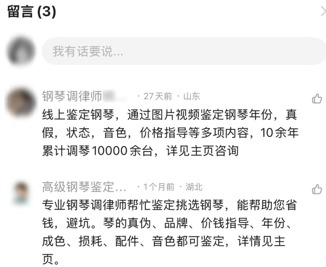 可即便如此,仍无人问津,帖子下方唯有满世界打广告的“调琴师”和“钢琴鉴定师”,显得极为讽刺。