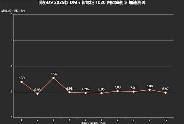 一开始就得稳稳当当,四驱系统那效率,没话说。动力嘛,挺带劲的,开起来很顺畅。就这么一路开下去,最快的时候,6.93秒就搞定了,而且成绩很稳,测了十次,每次都差不多在7秒上下!