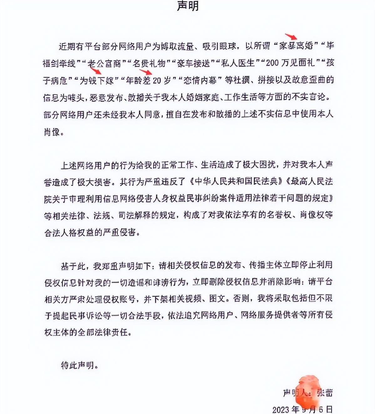 而此次失误迅速演变为网络上对其抨击的新论据,部分人士指责其“缺乏敬业精神”及“未能秉持最基本的职业操守”。在巨大压力之下,张蕾终得觉悟,沉默非止谣之策。2023年9月6日,该个体于社交平台公开发表声明,亲自出面澄清谣言。