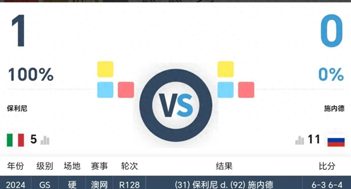 决胜盘,施耐德再次取得2-0的领先,气势如虹。难道这只是一场虚惊一场吗? 但保利尼并未放弃,她一次又一次地冲击对手的防线,用顽强的精神和精湛的技术,上演了一场惊天逆转。最终,她以6-2赢得了决胜盘,以2-1的大比分战胜对手,晋级四强!