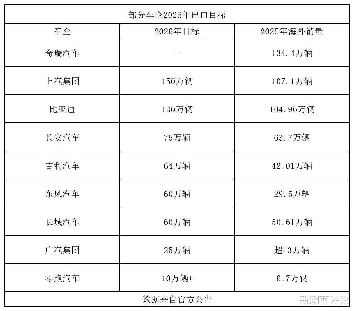 2026年海外销量目标为150万辆,较2025年(107.1万辆,同比增长3.1%)增长约40%。1月份销售10.5万辆,同比增长51.7%,连续11年蝉联“自主品牌欧洲销冠”的上汽名爵(MG)在欧洲交付近2.6万辆,同比增长约15%。