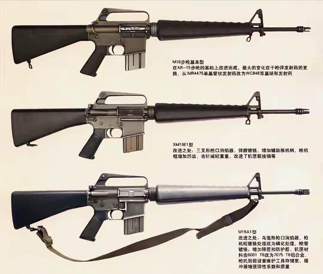 M16步枪由美国著名枪械设计师尤金·M·斯通纳领导设计的AR-15步枪发展而来,是二战后美军换装的第二代制式步枪。该枪由钢、铝合金及工程塑料制成,是世界上第一款正式列装部队且参加实战的小口径步枪。M16步枪将世界轻武器带入小口径时代,产生了极其深远的影响。