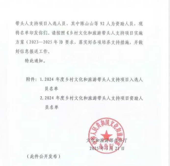 近日,文化和旅游领域拿过来喜讯!文化和旅游部办公厅发布《关于印发2024年度乡村文化和旅游带头人支持项目入选人员和资助人员名单的通知》,确定2024年度全国乡村文化和旅游带头人支持项目入选人员和资助人员名单。文旅带头人项目全国仅468人、资助人员全国仅92人获此殊荣,上海市崇明区均有两项成功入选,周勤、施大钟名列其中!