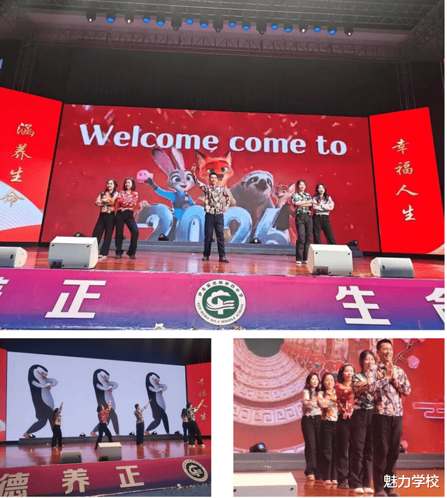 艺术滋养心灵,美德铸就品格。朗诵《心中的那束光》以深沉而激昂的语调,传承红色基因,照亮信仰之路;舞蹈《碇步桥》则通过轻盈灵动的步伐,勾勒江南水韵,展现中国文化中的静美与和谐。小品《总裁请就诊》以轻松戏谑的方式,反思成长与健康;而体育老师们一改往日严肃形象,以一曲《唱起草原的歌》唱出豪情与辽阔,呼应“体美融合”的育人理念。舞蹈《美丽中国》则以翩跹舞姿,礼赞祖国山河,激发深沉的家国情怀。