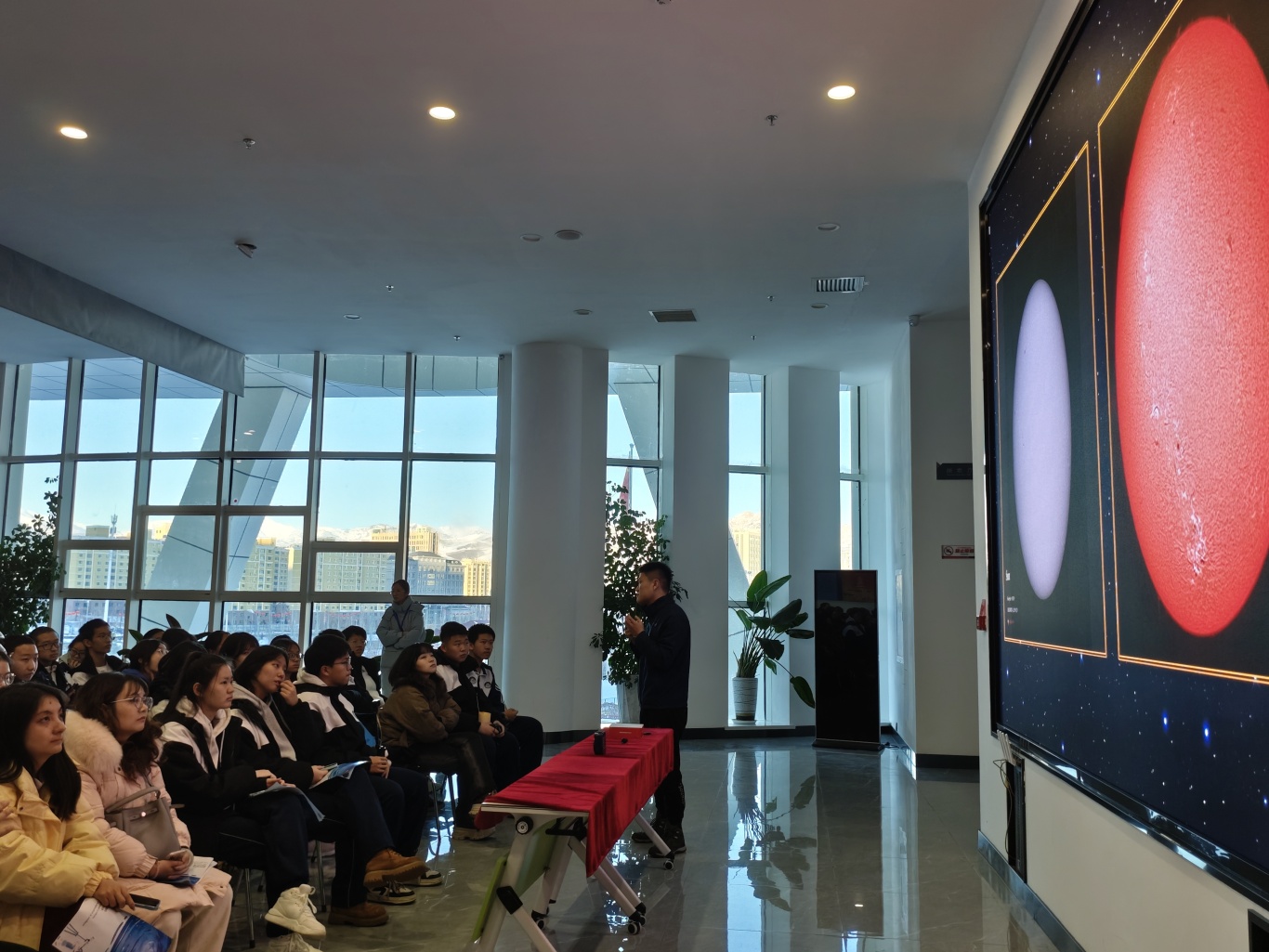 阿勒泰冬夜的寒意裹着雪风围拢校园时,在阿勒泰地区二中的「星空讲堂」已开启。这是本次研学的亮点环节,350名师生围坐礼堂,跟随阿勒泰天文台姚老师揭开了这座天文台的神秘面纱:从国家重大科技基础设施的功能,到前沿天文知识的科普,抽象的学科概念化作具体的探索故事,让孩子们真切读懂了学习与探索的价值。