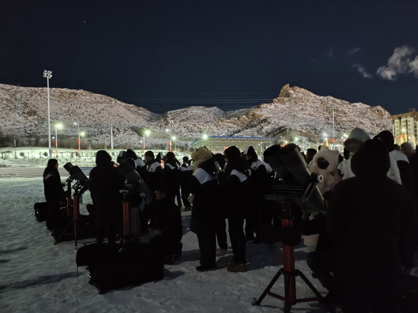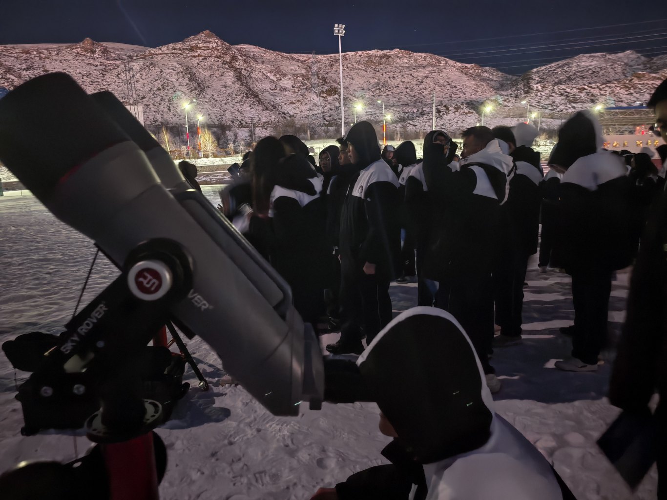 讲堂落幕后,孩子们裹紧衣衫踏入雪地寒夜。阿勒泰天文台的科普老师立于雪间,指尖循着天幕拆解星座轨迹、讲解当季星空规律;专业望远镜对准深空时,清晰的月球环形山骤然撞入视野。这是孩子们第一次亲眼见如此真切的月面细节,细碎的惊叹里,有人急忙举起手机对准目镜,要把这抹银白的宇宙震撼,妥帖存进雪夜的记忆里。