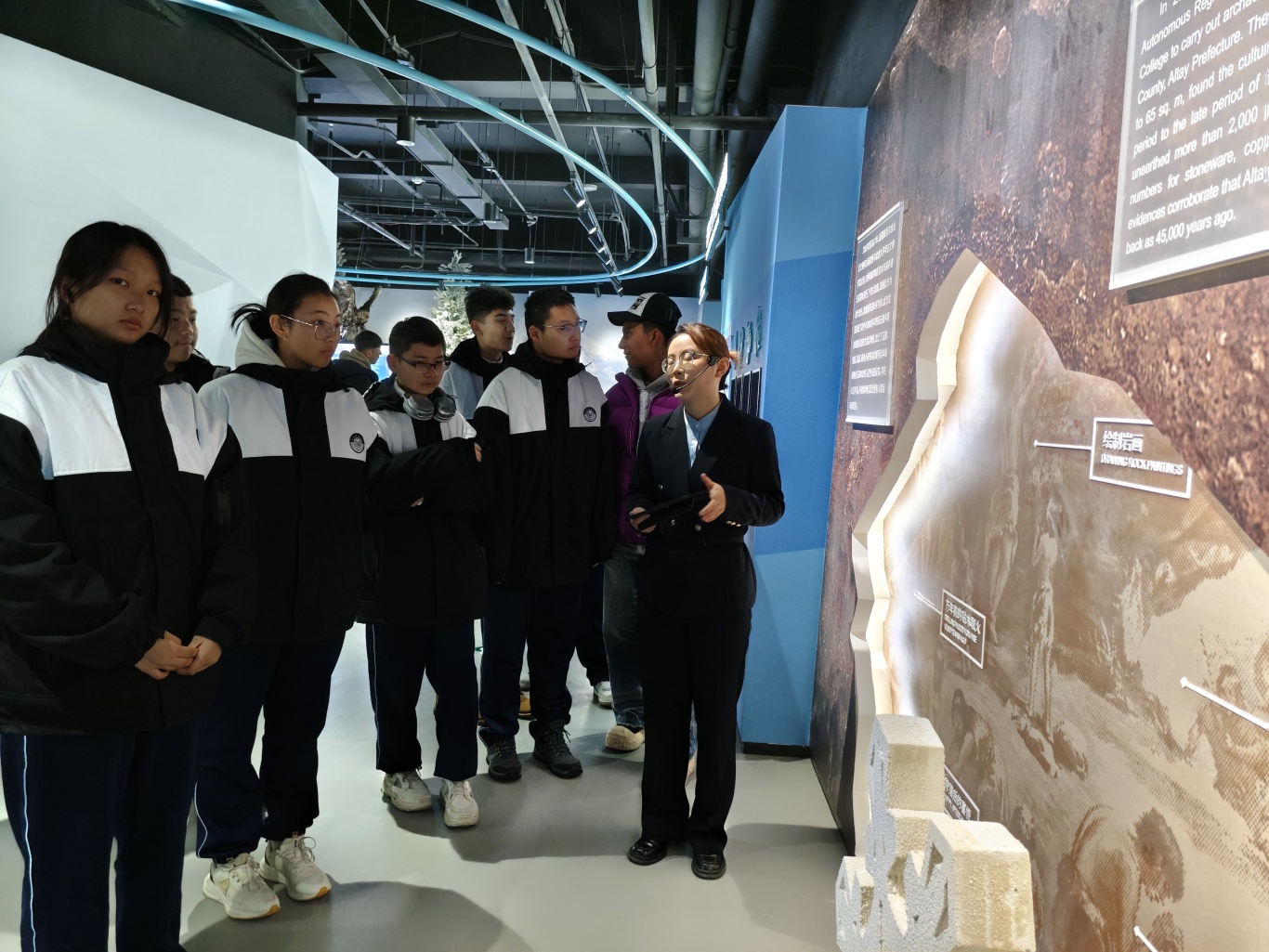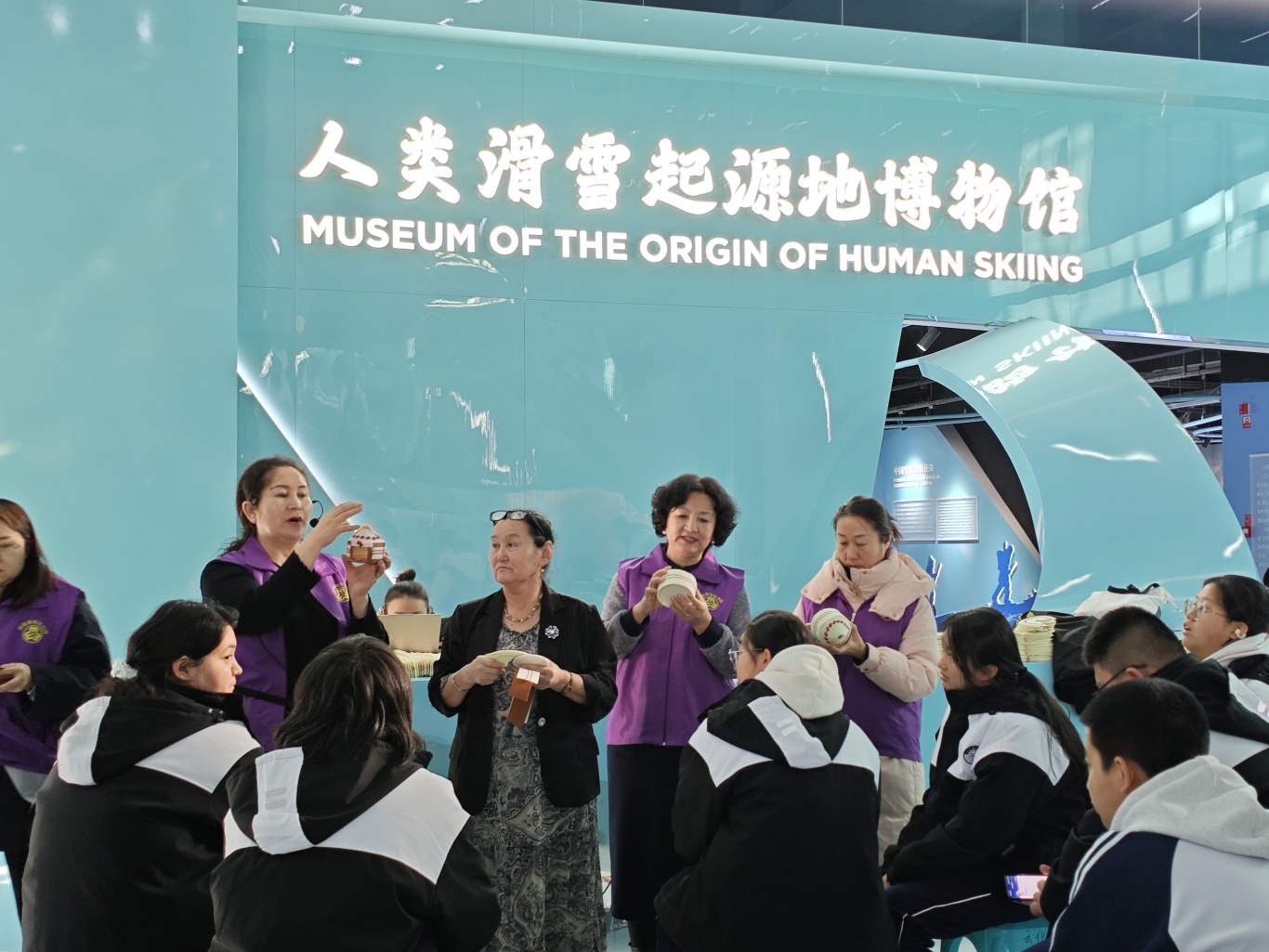 同学们走进人类滑雪起源地博物馆,从岩壁上的古老岩画到现代滑雪的发展历程,清晰的脉络勾勒出“人类滑雪起源地”的厚重底蕴。