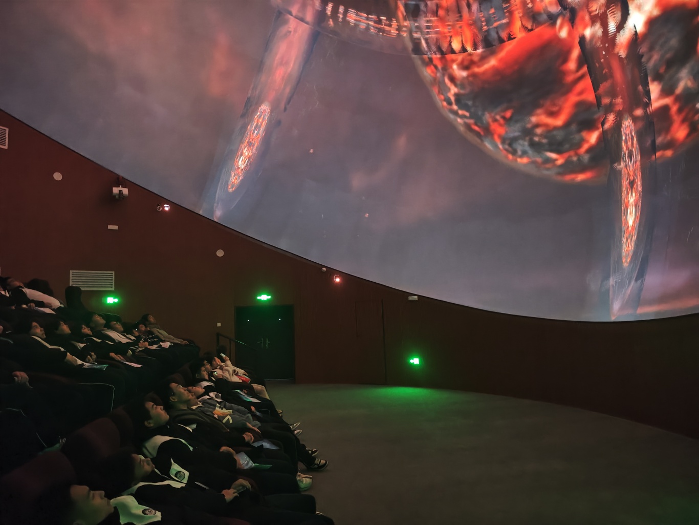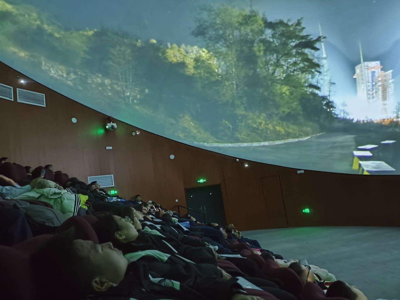 在球幕影院里,10 分钟的科普影片让孩子们 “坐” 在宇宙飞船里,掠过土星环的冰粒、穿过猎户座星云的光斑,把课本里的星系变成了眼前流动的璀璨。