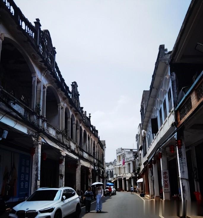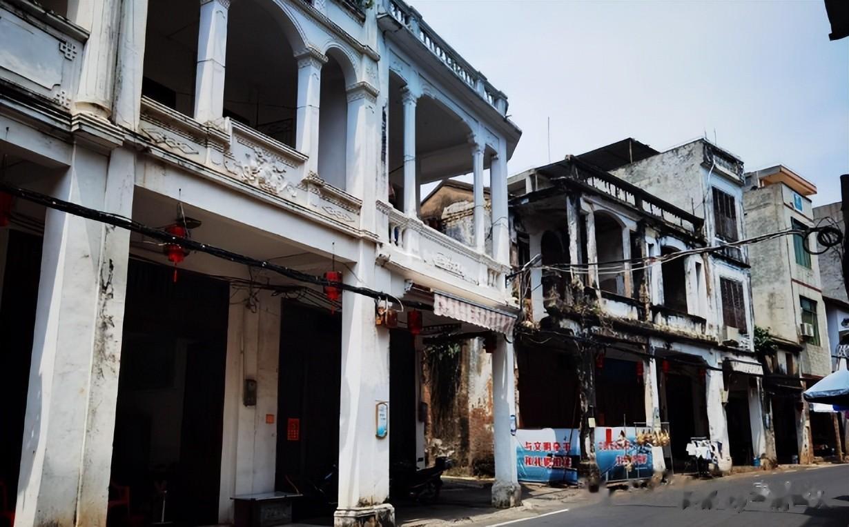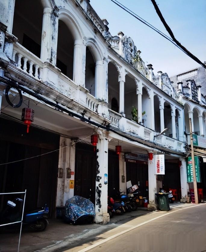 建筑沿街立面的装饰更是精细,充满中西合璧的韵味。曲线优美的山花与列柱相互映衬,山花上雕刻着龙、凤、松、鹤等象征富贵吉祥的图案,以及宝瓶、回纹等几何纹样,历经百年风雨,依然栩栩如生。楼顶墙面上的苔藓和藤蔓,为建筑增添了几分岁月的沧桑感。骑楼的结构与布局也充分考虑了当地多雨炎热的气候特点和生活需求,既适合开店经商,又满足居住储物功能,前屋底层为铺面,二层居住,后屋则作为仓库或厨房,实用又合理。
