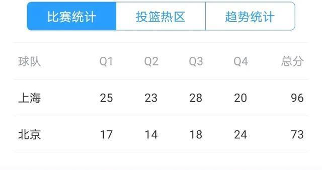 下半场双方交换场地接着比赛,这时候上海男篮的状态那可真是相当出色呢,一下子就打出了一波特别厉害的攻击波,比分是28比18领先北京队哦。等到第三节比赛全部结束的时候,您再看,上海男篮已经积累起了多达27分的优势啦,这战局基本上就已经很清楚明了啦,北京首钢队在这个时候几乎都没什么太有力的反击手段啦。接着就到了关键的第四节决胜局啦,北京首钢队呢,这时候状态倒是有所回暖了,可没办法,前面落后的坑挖得实在是太大啦,就算后面想追也追不上咯。最终的比赛结果就是北京首钢队以73比96输给了上海男篮队,也就这样和晋级决赛的机会无缘啦。