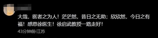 还有曾被徐教授治好过的患者也留言“大哉,医者之为人!茫茫然,昔日之无助;欣欣然,今日之有福!感恩徐医生!徐启武教授一路走好!”