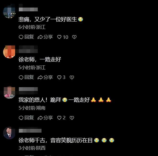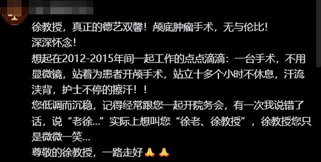 还有网友说,徐教授救过我家属的命,想不到会这么早离开了,徐教授一路走好!