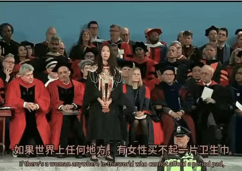 “如果世界上任何一个女人买不起一片卫生巾,我便不配称富足。”