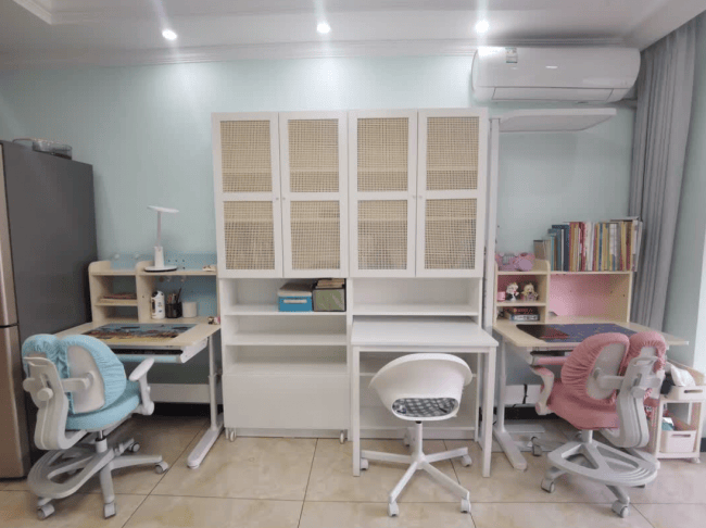 开学季应该买什么东西?55-75cm 高度自由调节的学习桌,搭配 80cm×60cm 宽敞桌面,小户型也能轻松放下。上方三层收纳架随手归置文具,下方隐藏抽屉藏起杂物,面板可擦洗设计,桌面永远整洁清爽。