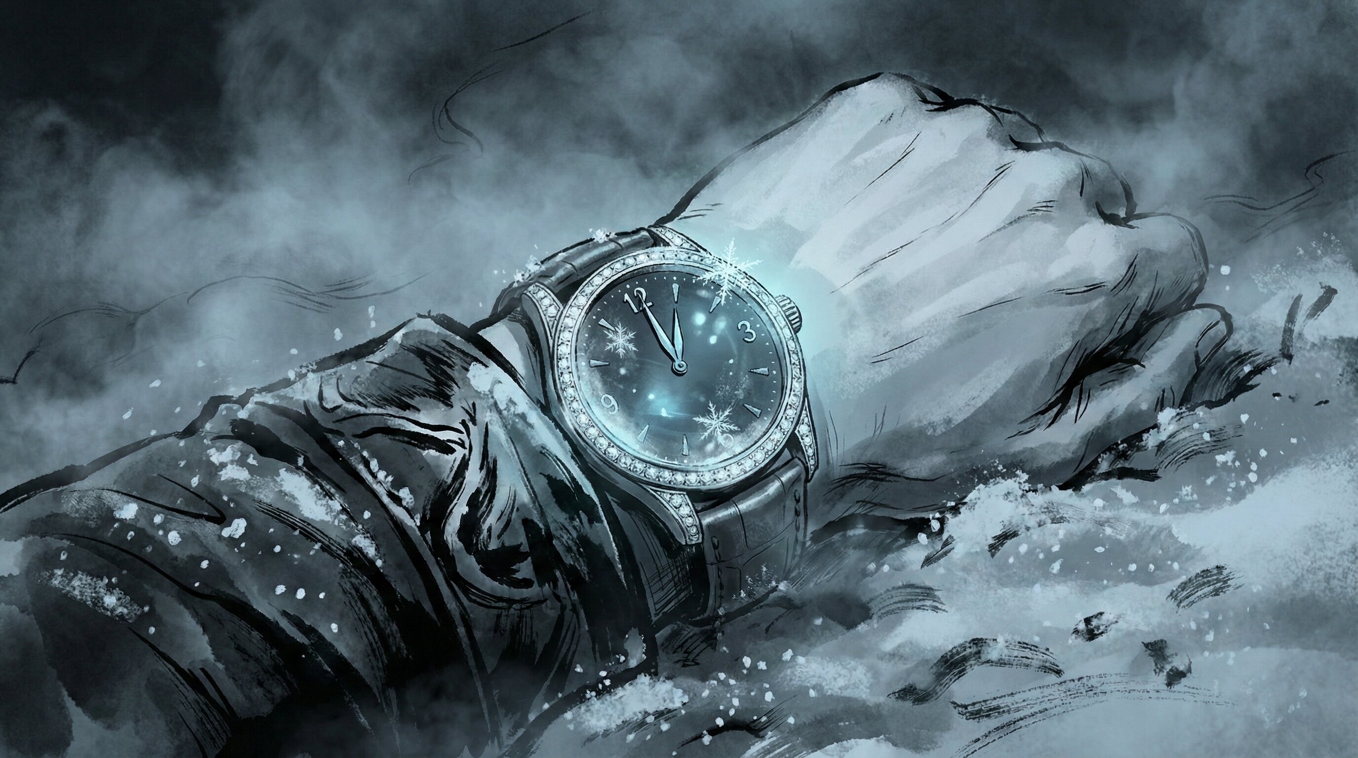 风雪中,帕梅拉手腕上那块滴答作响的钻石手表