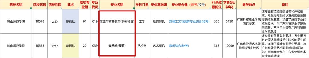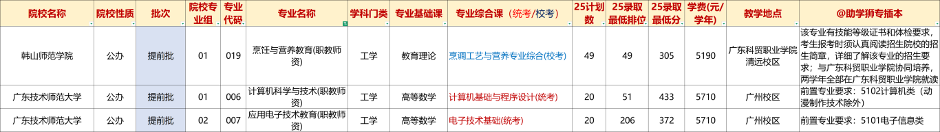 2025年广东专插本考试共有2所院校招生职教师资专业,分别是韩山师范学院和广东技术师范大学,招生专业可以看下图: